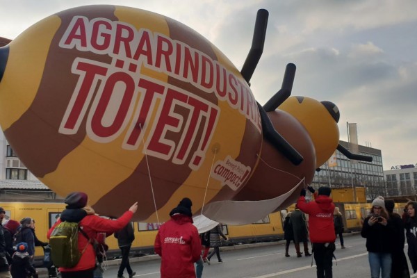 „Wir haben es satt!“ oder „Agrarindustrie raus aus unseren Töpfen!“ hallte es am Samstag durch Berlin. 35.000 Menschen, darunter Bäuerinnen und Bauern und besorgte Verbraucherinnen und Verbraucher, machten ihrem Ärger über Agrarkonzerne, Massentierhaltung oder die Agrarpolitik der Bundesregierung ordentlich Luft. Eine breite Bewegung demonstrierte für eine schnelle Wende in der Agrarindustrie, artgerechte Tierhaltung, für gerechten Handel und gutes Essen für alle.