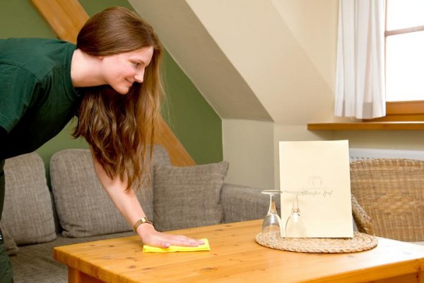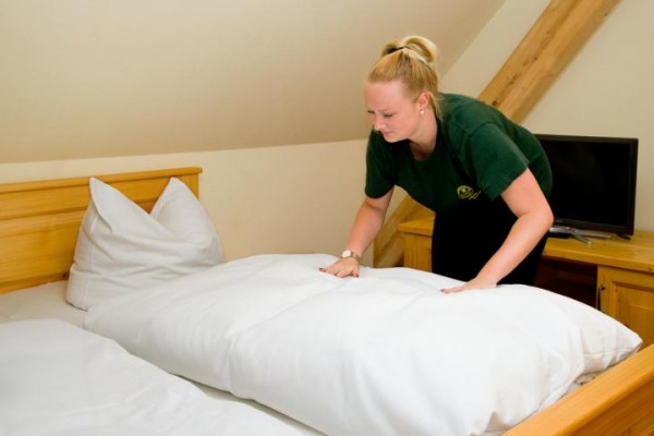 Genau anders herum ergeht es aktuell Victoria Ende (20 Jahre) und Jenny-Sophie Tiborski (17 Jahre), unseren neuen Nachwuchs-EthikBanker. Sie können es kaum erwarten, endlich im Berufsleben als Bankkauffrauen durch zu starten. Doch ehe es soweit ist, müssen auch sie sich zuerst auf dem Hof beweisen. Victoria, die selbst ein Pony besitzt und mit der Arbeit im Stall vertraut ist, hat sich sehr auf die Zeit auf dem Bauernhof gefreut. Doch die Überraschung war groß, denn für die erste Hofwoche hat sich die Agrargenossenschaft in diesem Jahr etwas Neues einfallen lassen: Housekeeping stand auf dem Programm. So begann das Praktikum diesmal mit Betten machen und Staub wischen in den Zimmern des zum Hof gehörigen Naturhotels, Tellerwaschen im Restaurant und jeder Menge Unkraut zupfen rund um das gesamte Gelände. „Ich werde wahrscheinlich von Unkraut träumen, aber es gibt sicher noch viel anstrengendere Arbeiten als Unkraut jäten. Die Tage im Stall werden bestimmt auch nicht einfacher. Diesen kleinen Exkurs vor der eigentlichen Ausbildung finde ich nicht schlimm, es wird uns nicht schaden “ erzählt die gebürtige Leipzigerin Victoria. „Die Umgewöhnung vom Schulleben in den 8 Stunden Arbeitsalltag, an dem der Wecker früh morgens um fünf klingelt, war viel schlimmer als die eigentlichen Aufgaben hier!“ stimmt ihr die neue Kollegin Jenny-Sophie lachend zu. „Ich freue mich auf die Arbeit mit den Tieren in den nächsten Tagen. Ich habe noch keine Erfahrungen darin und bin sehr aufgeregt. Meine Mutti jedenfalls ist total begeistert. Sie hat auch einmal auf einer Alm gearbeitet und findet es gut, dass ich jetzt auch diese Erfahrung machen darf – obwohl ich ja Bankkauffrau werden will.“ erzählt die Eisenbergerin weiter.